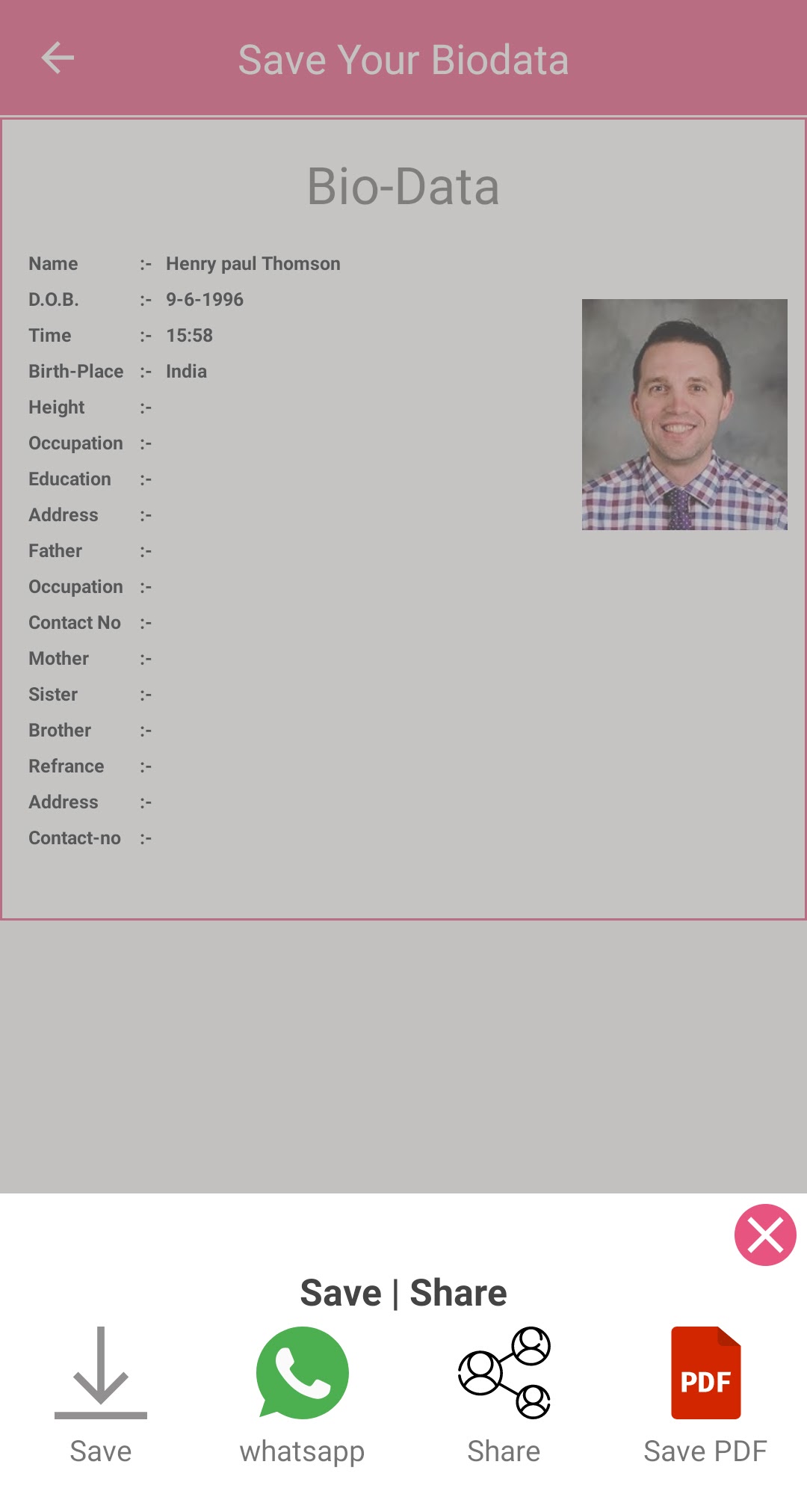 This app can be the perfect app to find your partner by creating awesome bio data. You can recommend and suggest this app to your friends and relatives so they can also create best bio data for them.
